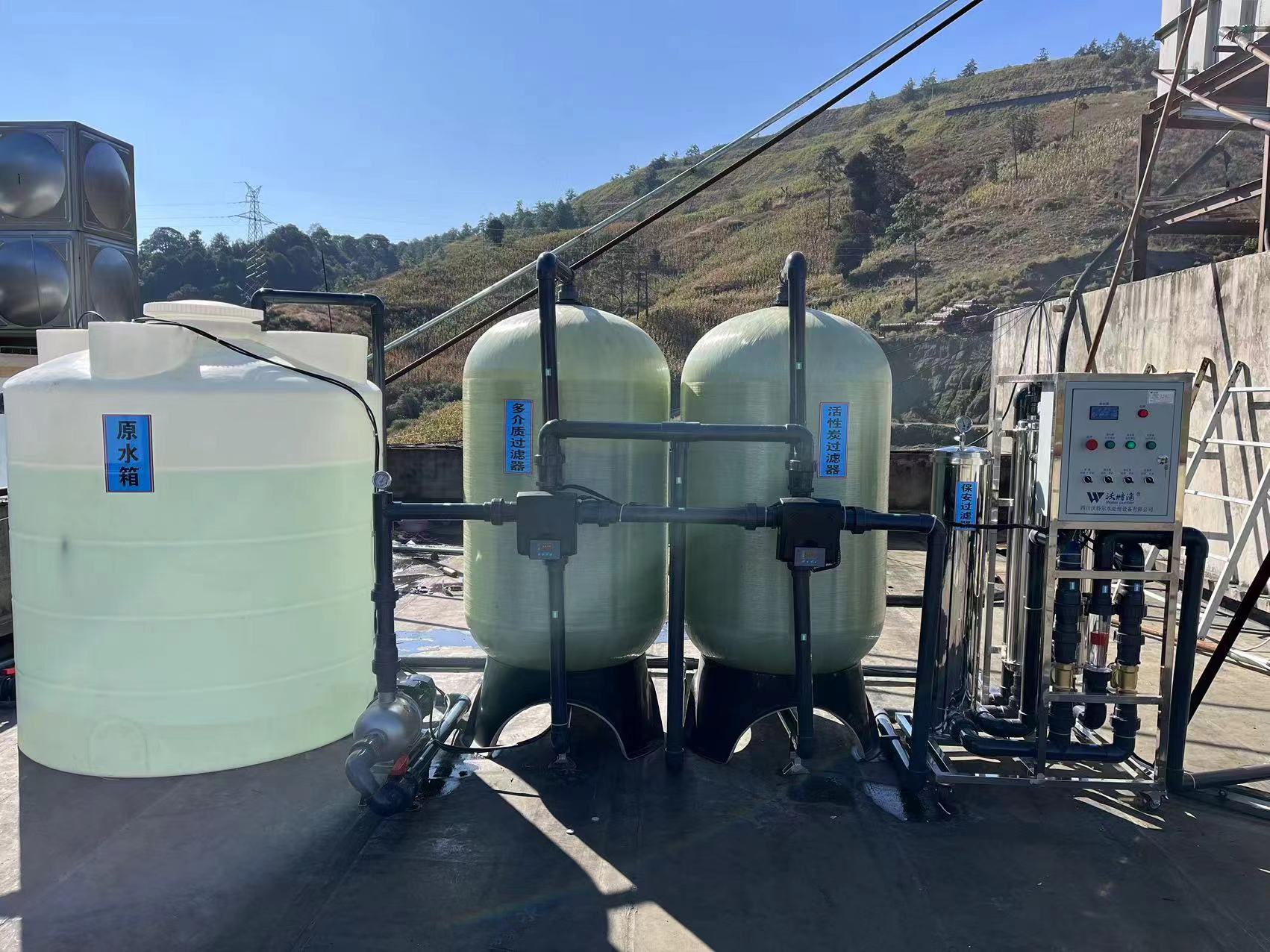 工藝流程:進(jìn)水→原水箱→原水輸送泵→多介質(zhì)過濾器→活性炭過濾器→精密過濾器→超濾過濾裝置(產(chǎn)水量≧10T/H)→超濾水箱→出水口。